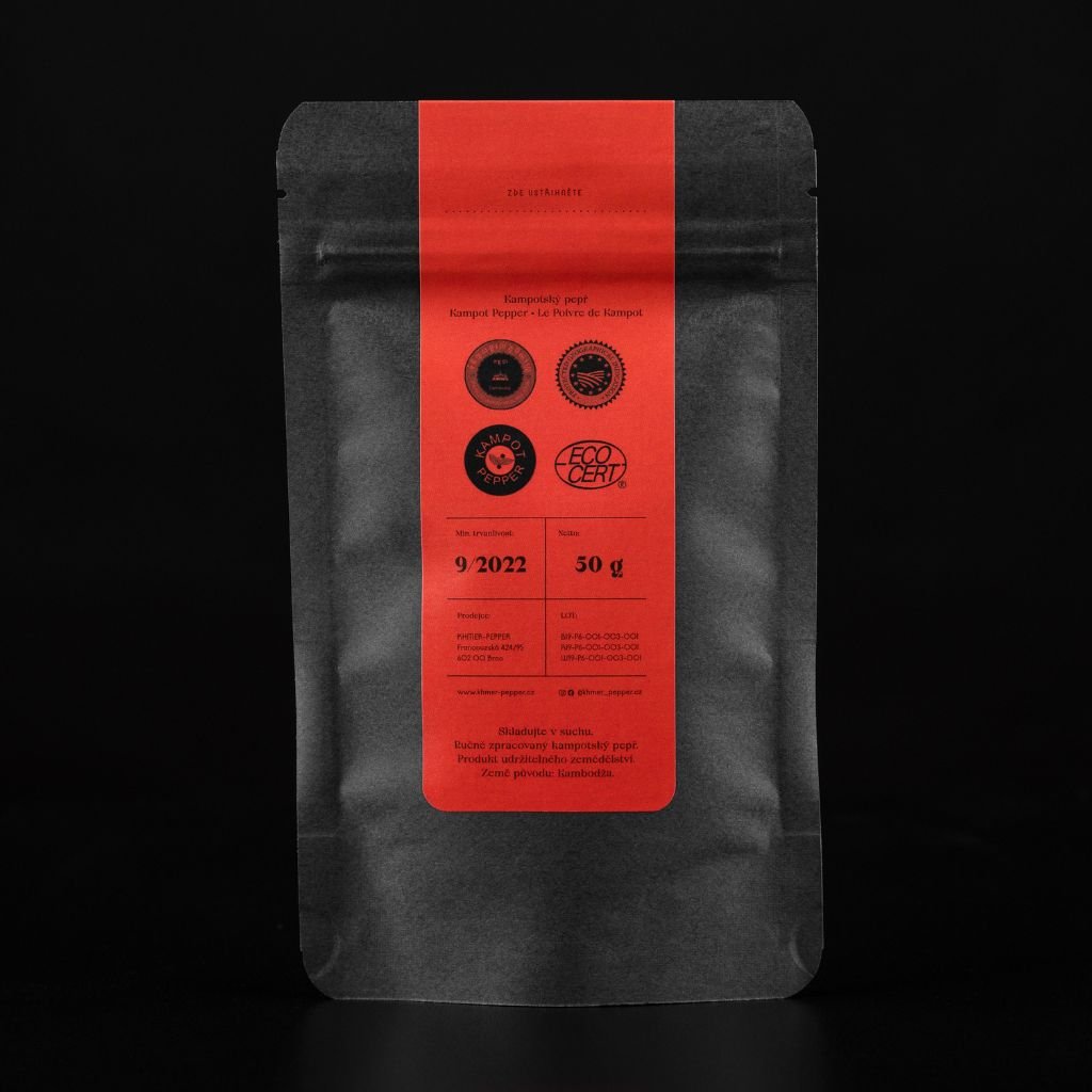 Naše 50g balení červeného Kampotského pepře je vhodné pro každodenní použití a zajistí, že budete mít vždy po ruce to nejlepší koření. Vyberte si kvalitu a dopřejte svým receptům jedinečnou chuťovou dimenzi s tímto výjimečným pepřem.